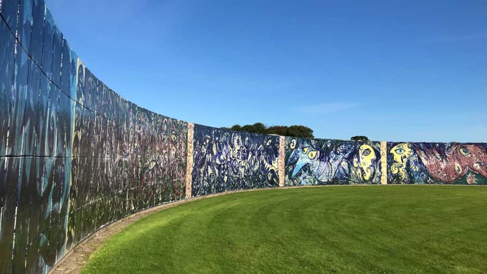 Seit 2021 kannst du das ortsspezifische Klangkunstwerk OPHAV der Komponistin Ditte Rønn erleben. Das Werk wird durch Bewegungssensoren aktiviert und umgibt dich mit Klängen aus 14 Lautsprechern, die auf dem Dach des Gebäudes installiert sind – im Zusammenspiel mit dem keramischen Kunstwerk.