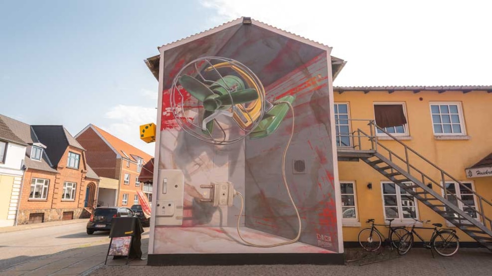 The two Dutch street artists, Leon Keer and Marije Spelbos, are the artists behind this gable painting from 2017 with 3D-effects.