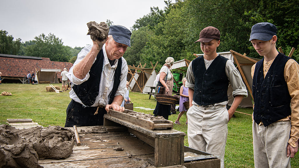 Erlebe das Leben in der Ziegelei, streiche Ziegel, alte Kinderspiele spielen und ein gutes, altmodisches „Fette-ma“ probieren, wenn die Ziegelei um 1900 zum Leben erwacht.