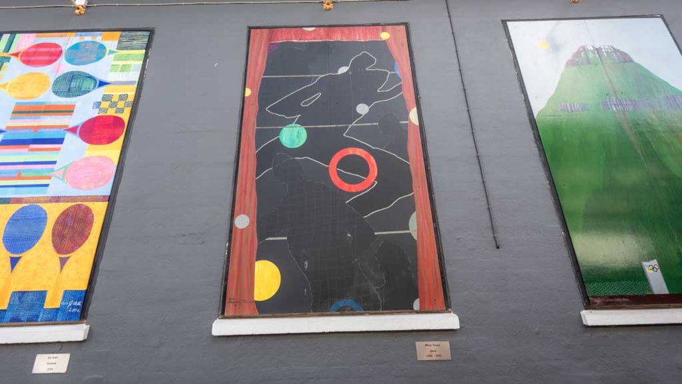 The painting "Japan" is a part of the gable painting collection "Sportsarkaden", which is located on Storegade in Brande.