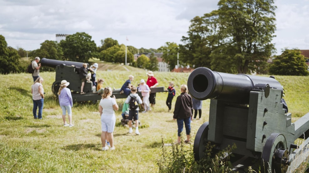 Auf dem Weg von Bastion zu Bastion erzählt Ihr Führer von der Geschichte des Walls und seiner zentralen Bedeutung für die Verteidigung Dänemarks. Dabei können Sie in aller Ruhe die imponierenden Kanonen und Mörser überall auf dem Wall betrachten. Wie weit können sie Ihrer Meinung nach schießen? Auf dem Ausflug können Sie sich als König fühlen und Ihr Gefolge zum weißen Wasserturm führen, wo der Rundgang mit einer schönen Aussicht über die Stadt endet.