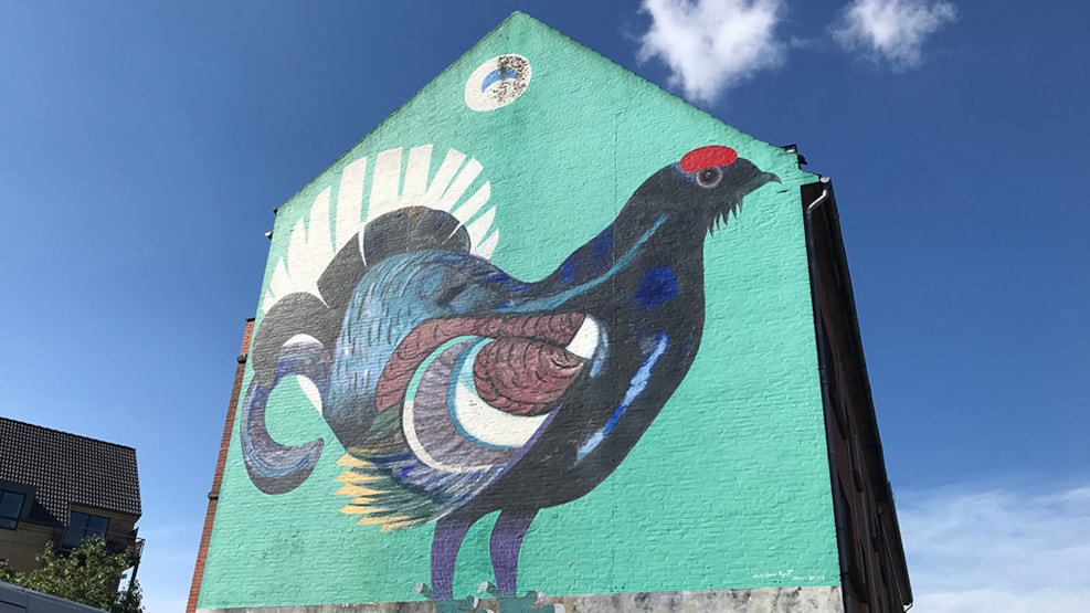 Before the artist started painting, he visited the natural resort Harrild Hede, to find inspiration for the perfect sorroundings for the black grouse.